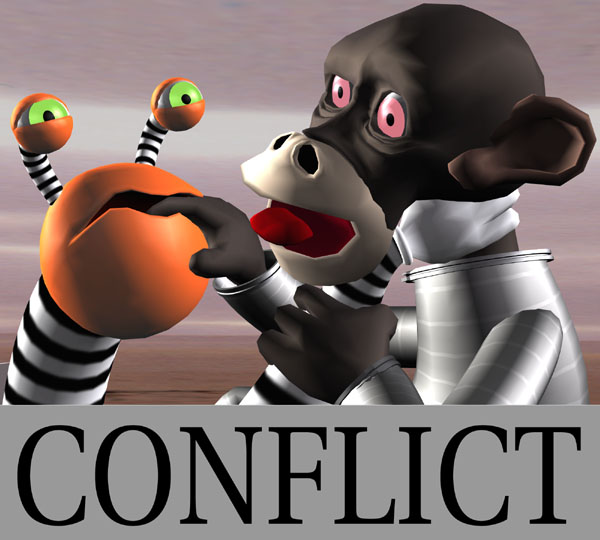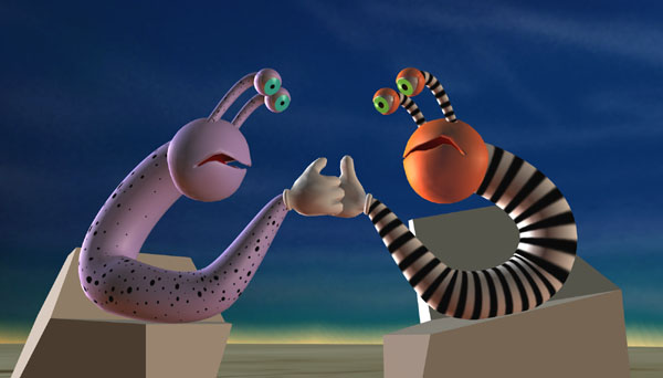 Fred and the Worm at each other's throat.