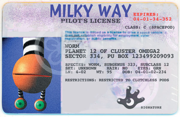 The Worm's pilot license! My concept, photo and license but Marilyn Novell integrated
